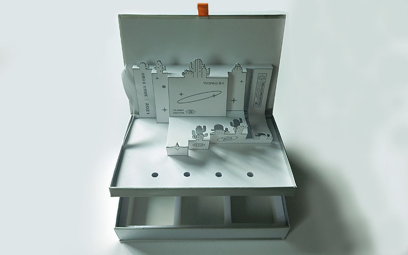 今年博霖就接到一款造型奇特的月餅盒,最初拿到客戶設計稿時還是一頭霧水。月餅盒定制最主要的兩個内容就是結構跟内容兩部分,由於客戶對於結構完全不瞭解,全憑自己想象做的。做爲專業的包裝盒定制廠家業務員 ,在看到客戶設計後也是很迷糊,再跟客戶耐心的溝通瞭解其需求後主動爲其提供結構的設計。盒型主要分爲兩層,一層爲勳章展示層、一層爲月餅禮品放置層。其中勳章層還有立體賀卡,並且客戶要求兩層都會翻蓋的形式。爲此特意設計瞭上下兩層均爲翻蓋的雙層盒,将第一層盒子固定到皮殼上,使第一層做爲第二層的蓋第一層又有單獨的蓋。這樣就完美解決瞭所有問題,既是雙層盒又是雙層翻蓋盒。