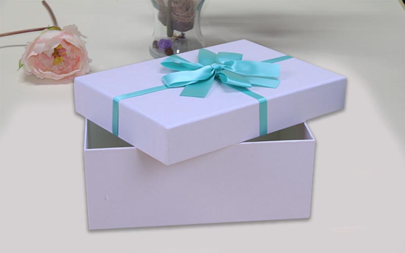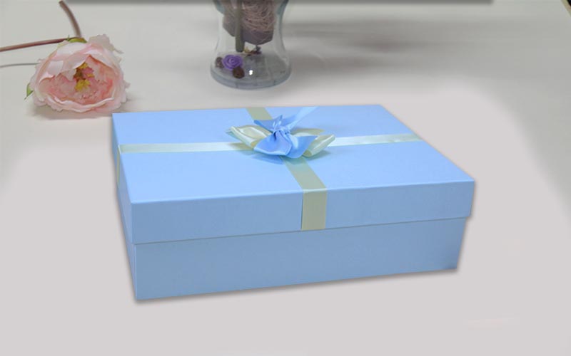 1.材質:盒子面紙特種紙空白有紋路的紙張,裱1500G雙灰闆底盒跟天盒一樣的材質做工,盒子表面年各種顔色絲帶。此款服裝包裝盒爲各種通用款式機器批量制作。