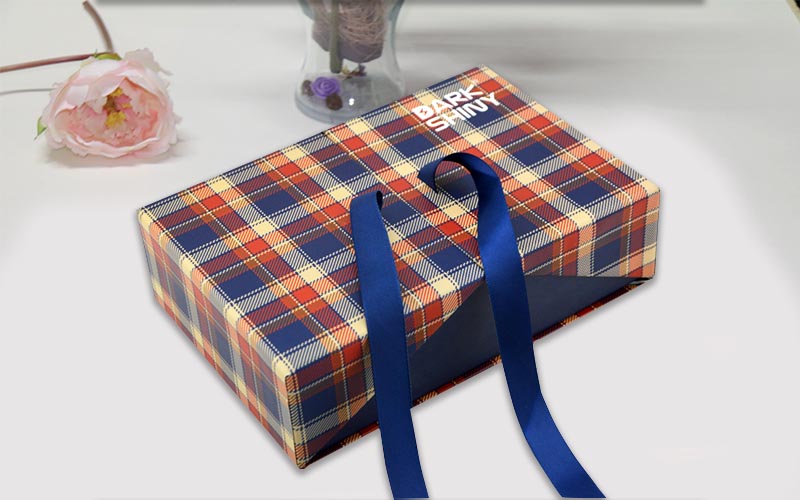 1.材質:盒子採用157G銅版紙,單面彩色印刷,單面啞膜,裱1500G雙灰闆盒子内襯貼專藍色面紙,盒型爲雙開翻蓋盒,盒子正面粘2根藍色絲帶,此款包裝盒純手工制作