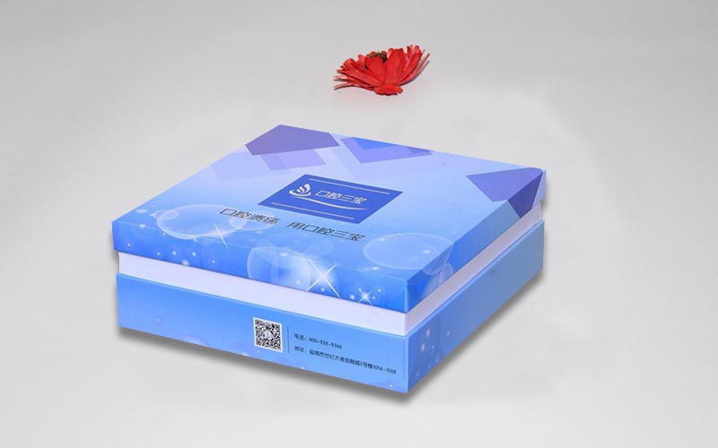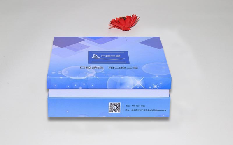 1.材質:盒子面紙採用銅版紙單面彩色印刷,啞膜,裱1300G單白闆,這款翻蓋盒中間加瞭内圍條,内圍條爲瞭更好地卡住盒子,内托用珍珠棉裱一層珍珠白綢布,整款盒子手工制作。