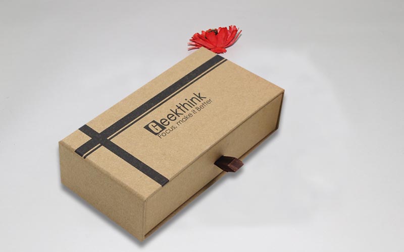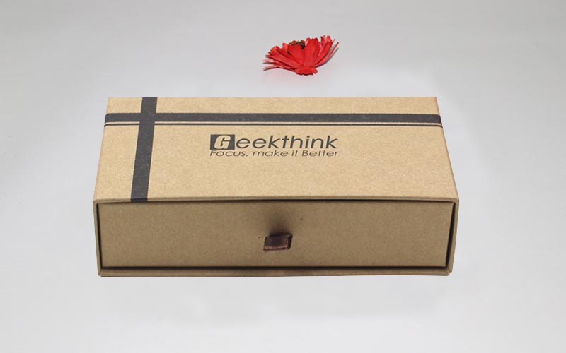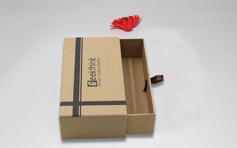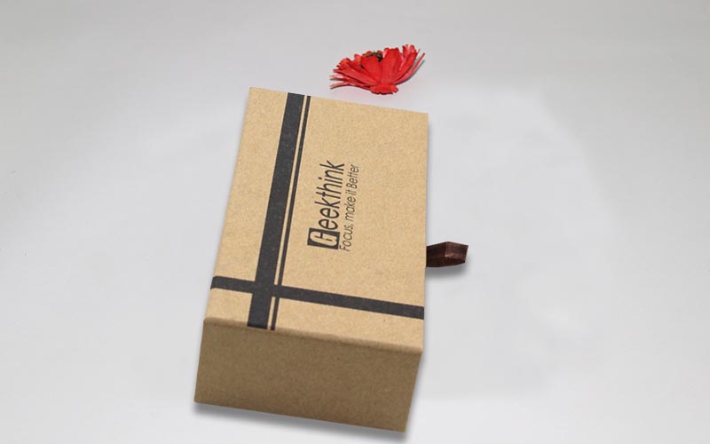 1.材質:棕色牛皮紙單面單色印刷,裱1200G雙灰闆,内抽盒也用一樣的材質 ,粘一抽拉的絲帶,整款盒子材質工藝一樣機械化制作 。